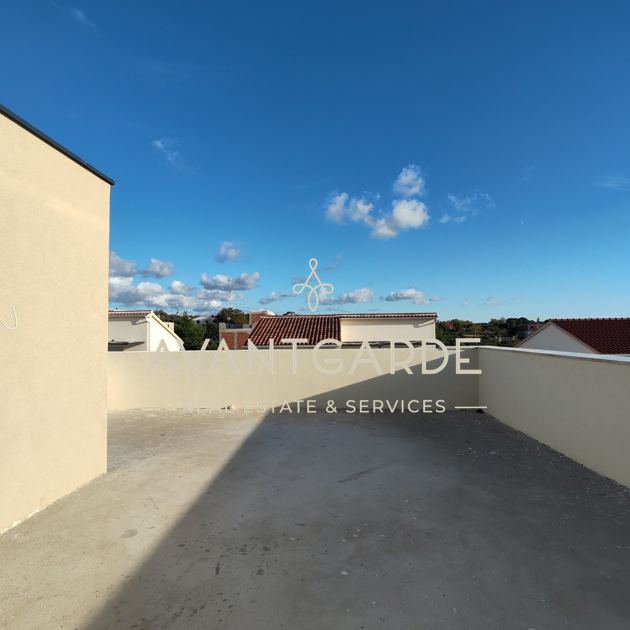 Ein besonderes Highlight sind die Außenbereiche: eine teilweise überdachte Terrasse, ein gepflegter Garten mit privatem Pool sowie eine exklusive Dachterrasse mit Pergola und vorbereitetem Anschluss für einen Jacuzzi – perfekt, um entspannte Abende mit spektakulärer Aussicht zu genießen.